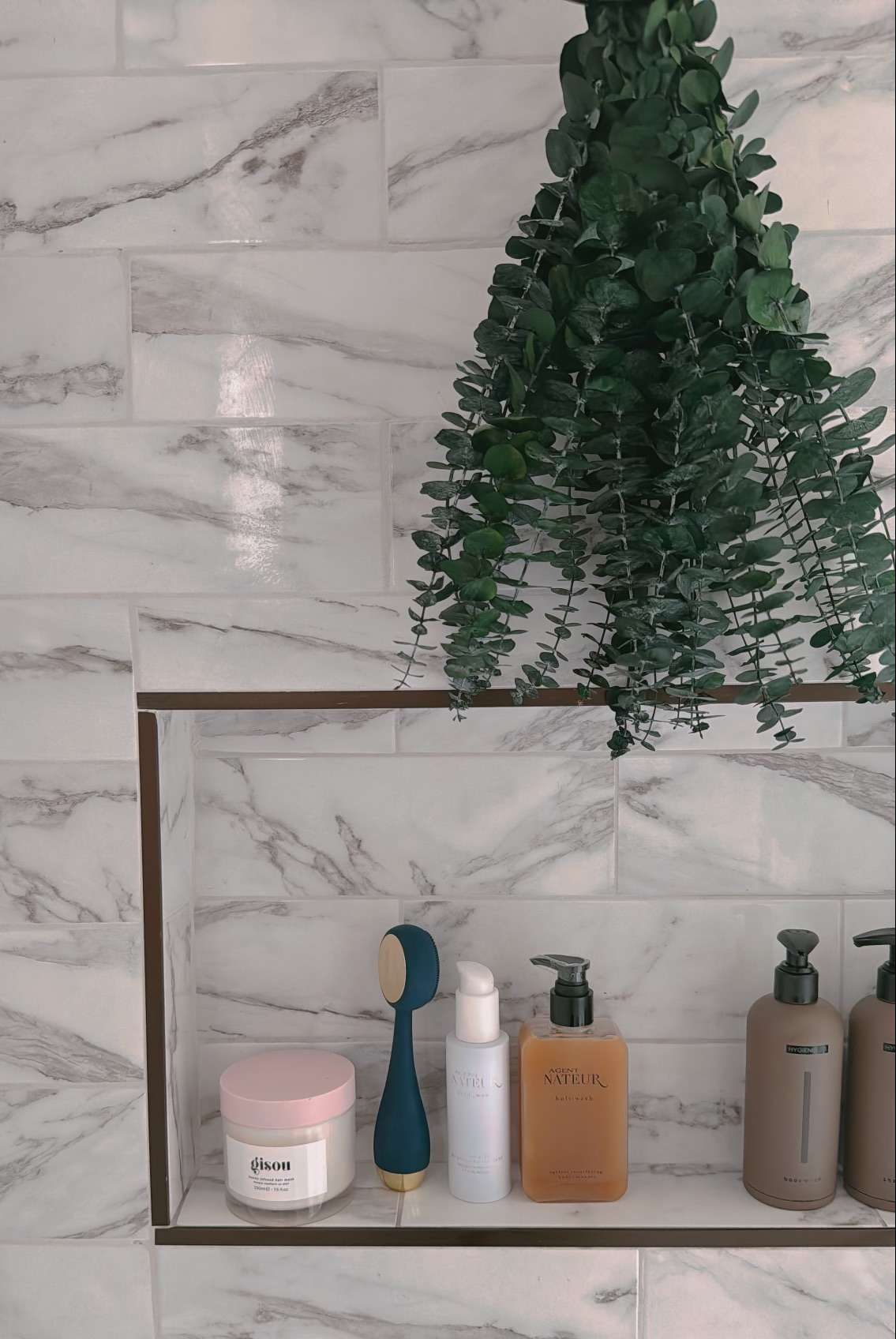 You probably know by now that I LOVE a salt lamp night light in my bathroom. So this combined with the eucalyptus at night makes my whole bathroom feel like a bougie spa. It transports me to another place.