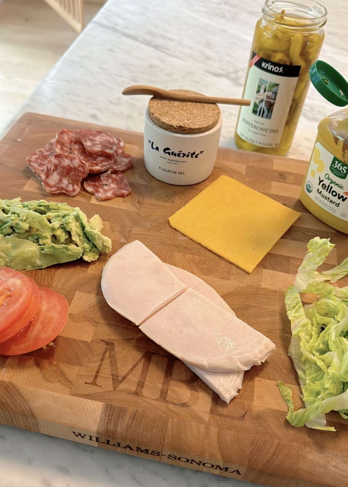 While we’re here, you always ask about the monogrammed cutting board. It’s so chic and not only is it so useful, it’s almost like a statement piece in our kitchen. You can leave it out on your island, put your fruit bowl on it, use it as a charcuterie board, and store it upright behind your stove for a little decor. It’s from Williams Sonoma and I think it makes such a good gift. You can personalize it by having it monogrammed which gives it a special touch.